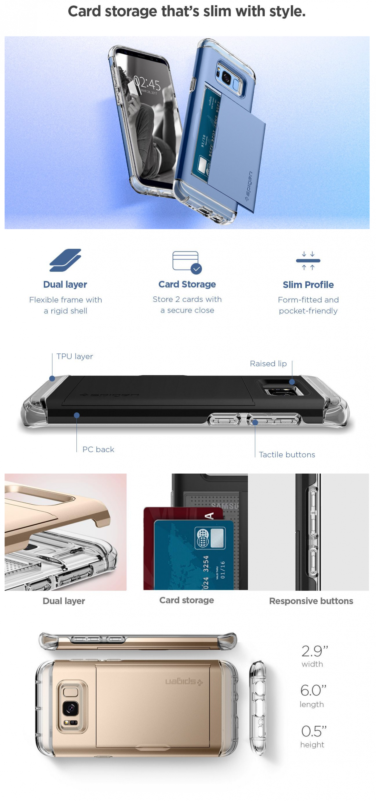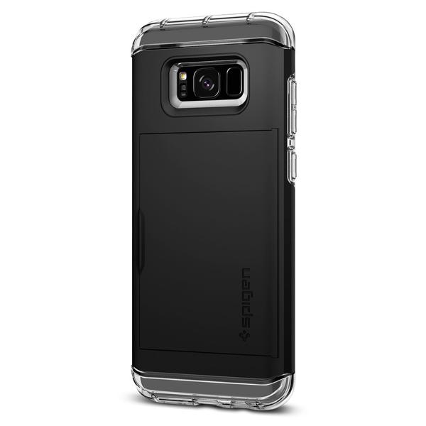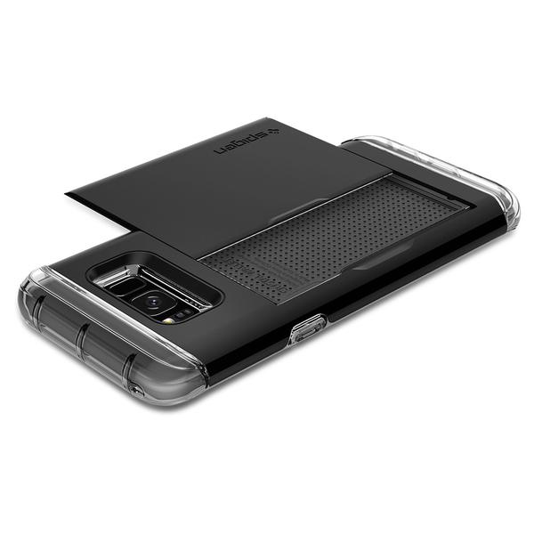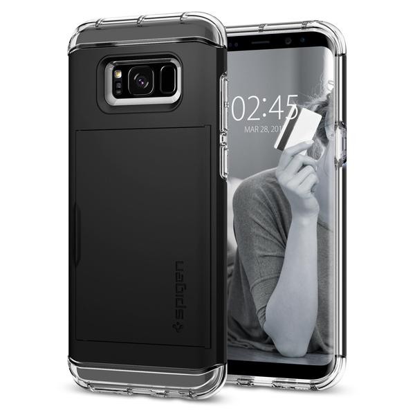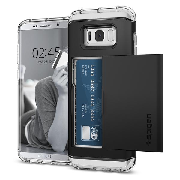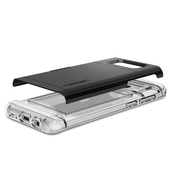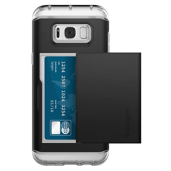 Simplify your shopping essentials with the new Spigen Crystal Wallet™ for the Samsung Galaxy S8 without sacrificing an ounce of protection and style! Enjoy the latest, clear TPU design of our Crystal Wallet™ while seamlessly concealing up to two cards under its quickly accessible sliding cover. The innovative design keeps your cash and cards safe unlike other wallet cases that suffer from open security issues. Its dual-layered casing shields your brand new Samsung Galaxy while its stylish look gives zero impression that it also doubles as a wallet!