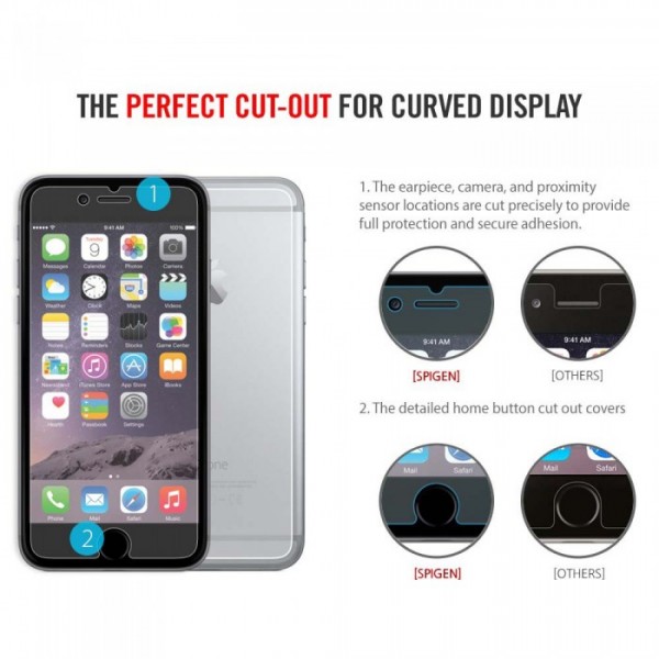 - Lift Prevention Cutouts: Due to the iPhone 6 having a curved display, the screen protector is shaped to fit the flat part of the display to prevent lifting at the edges.