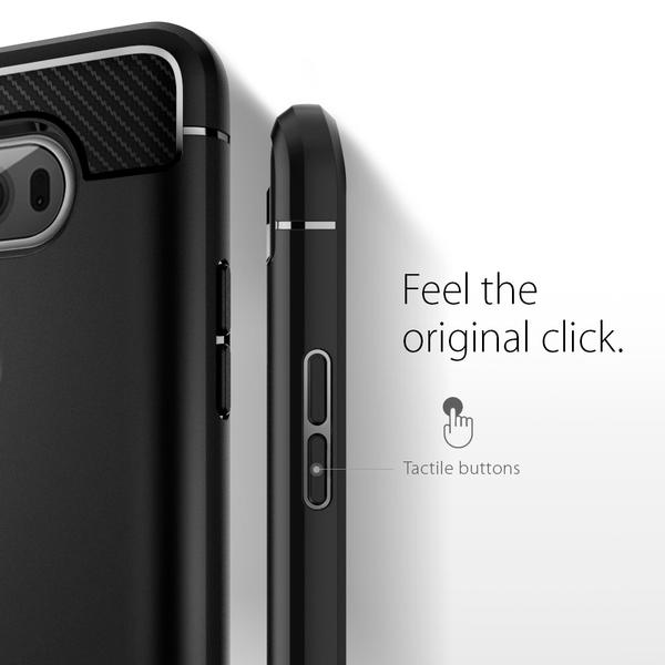Want a single layer protection with extreme style? The Rugged Armor is exclusively crafted with a sleek black TPU shell with textured carbon fiber accents. This guarantees not only a premium look with protection but a bang for your buck. Our newly designed Rugged Armor for LG V20 comes specially with a beveled, circular opening for quick fingerprint scans. The inside of the case is lined with our spiderweb pattern and Air Cushion Technology on all corners to assure shock-absorption in every impact. Stay simple and stylish with Rugged Armor!