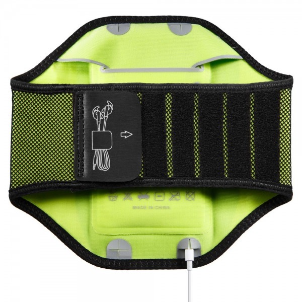 Get music on the go. The Spigen armband is made with SPOCRA™ for superior comfort during workouts. SPOCRA™ is a fast-dry elastic fabric that stretches to form fit the user. The armband is adjustable using a versatile velcro strap which also doubles as a length adjusting clasp for earphone wires. The interior of the armband features a storage compartment for cards, cash, and keys.