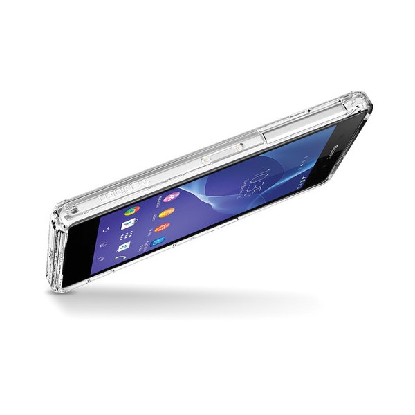 The crystal clear Spigen Sony Xperia Z2 Case Ultra Hybrid is a protective case with a clear hard back panel and a flexible edge. The case absorbs shock and has lips on the front and back to protect the screen and the back panel against scratches. The materials are engineered to allow you to get a secure grip on the case and reduce slippage. Air Cushion Technology Corners offer added protection. This case also comes with a screen protector to guard against scratches to the display.